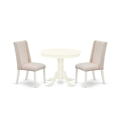 3-Piece Linen White Finish Solid Wood Top - Dining Room Set - Seats 4