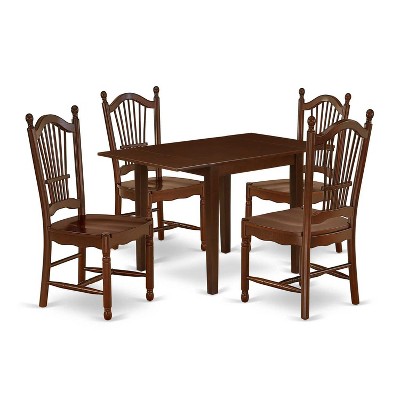 5-Piece Mahogany Finish Solid Wood Top-Rectangular Dining Room Set-Seats 4