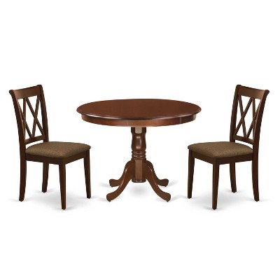 3-Piece Mahogany Finish Solid Wood Top - Dining Room Set - Seats 4