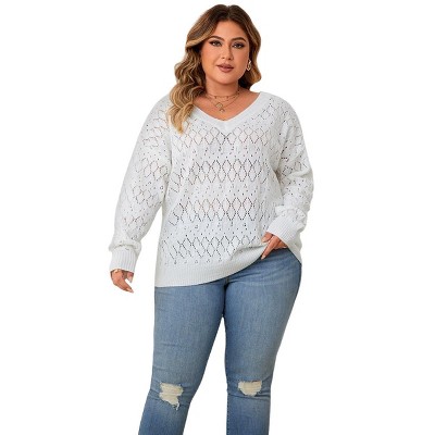 Women's Crewneck Crochet Lightweight Knit Spring Summer Fall Sweaters Trendy Pullover Tops