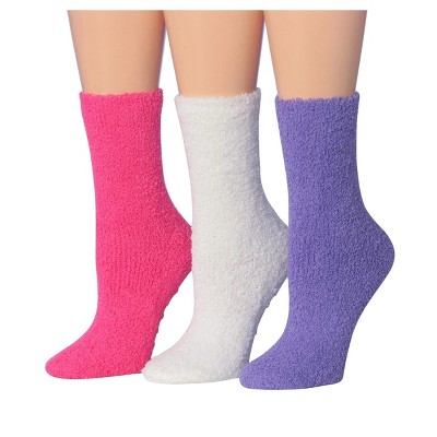 Tipi Toe Women's 3 Pairs Cozy Microfiber Anti-Skid Marshmallow Blush Patterned Fuzzy Crew Socks