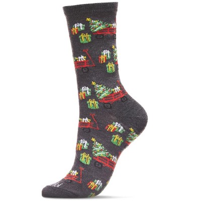 Memoi Women's Christmas Tree & Presents Crew Socks Denim Heather 9-11