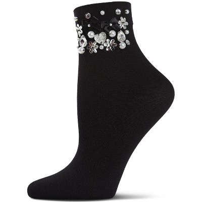 Memoi Women's Starstruck Rhinestone Embellished Anklet Sock Black 9-11