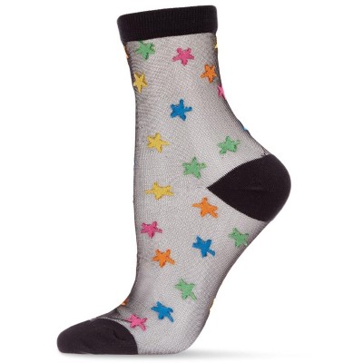 Memoi Women's Starstruck Colorful Cotton Blend Sheer Anklet Socks Black 9-11