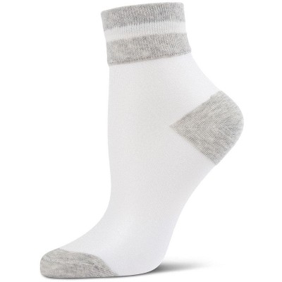 Memoi Sheer See-Through Ankle Socks with Striped Cuff