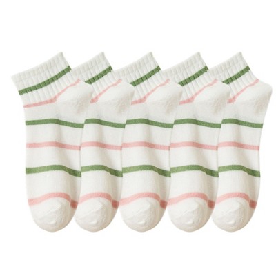 Anna-Kaci 5 Pairs Women's Low Cut Ankle Socks with Polka Dot and Stripe Patterns Soft Cotton Anti-Pilling Casual Everyday Style