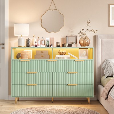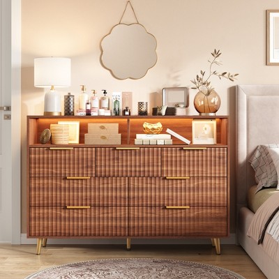 SunnyFurn 7 Drawers Dresser for Bedroom, 53.9" Wide Dressers-Fluted Wood Drawers with Gold Handle, Modern Chest of Dressers for Living Room