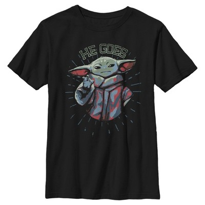 Boy's Star Wars The Mandalorian Father's Day Grogu He Goes T-Shirt