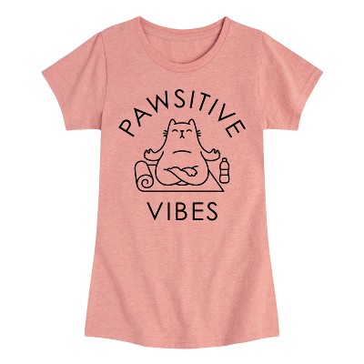 Girls' - Instant Message - Pawsitive Vibes Yoga Cat Fitted Short Sleeve Graphic T-Shirt