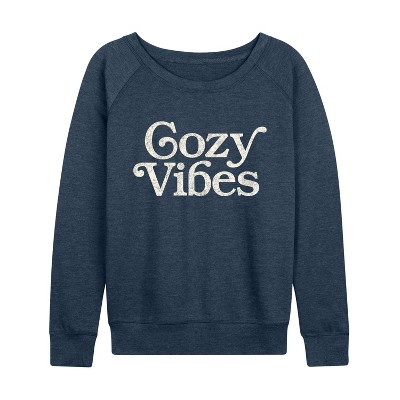 Women's - Instant Message - Cozy Vibes Lightweight French Terry Wide Neck Long Sleeve Graphic Shirt