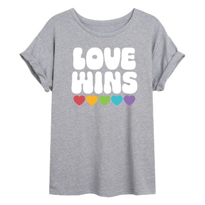 Women's - Instant Message - Love Wins Rainbow Hearts Oversized Graphic T-Shirt