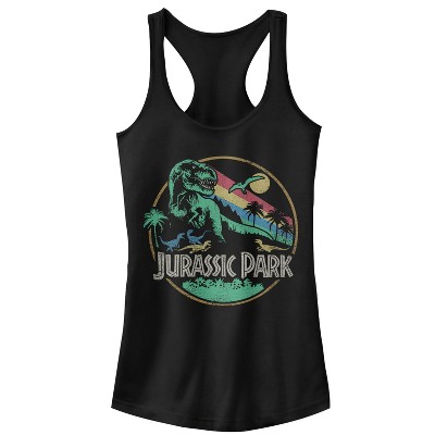 Juniors Womens Jurassic Park Rainbow Emblem Racerback Tank Top
