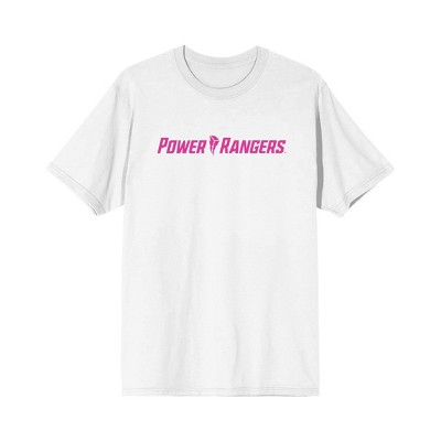 Power Rangers Pink Ranger Firing Bow Adult White Crew Neck Short Sleeve T-shirt