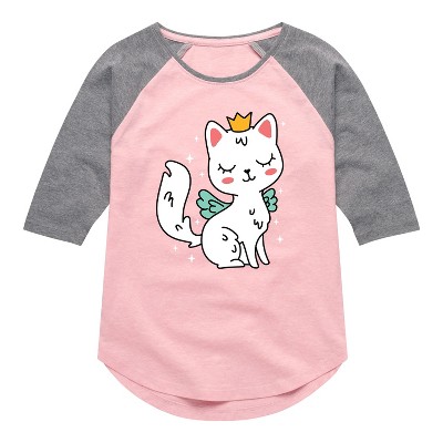 Girls' - Instant Message - Princess Kitty Shirt Tail Raglan Graphic T-shirt