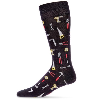 Memoi Men's "Tool Bench" Rayon from Bamboo Blend Novelty Crew Sock Black 10-13