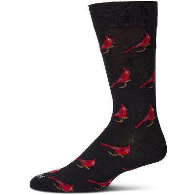 Memoi Men's Cardinal-Themed Rayon Blend Novelty Crew Sock Black 10-13