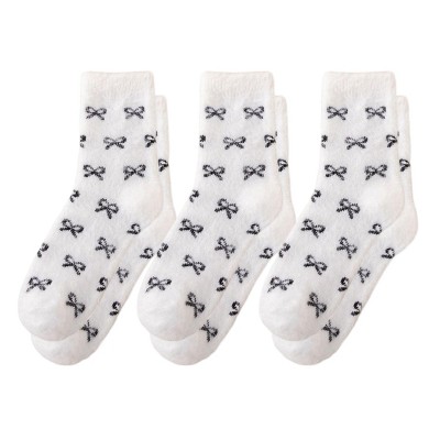 Anna-Kaci Women's 3-Pack Fuzzy Crew Socks with Allover Bow Pattern Soft Cozy Knit Winter Sock Set