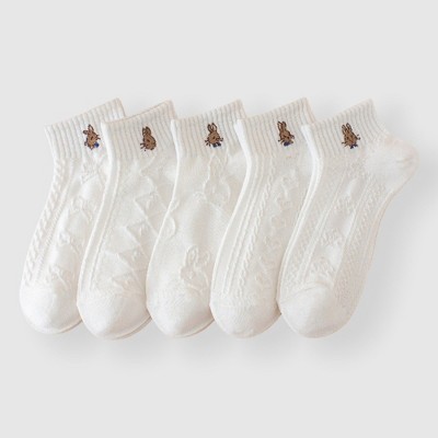Alilang Women's Summer Ribbed Ankle Socks with Bow Embroidery 5Pk