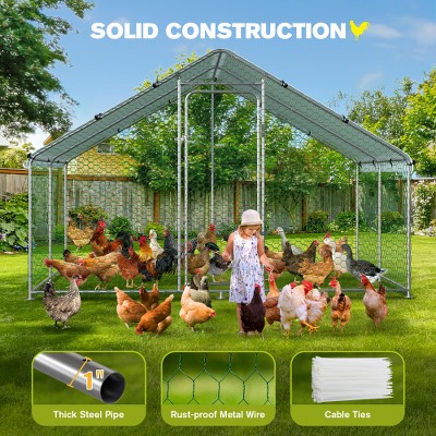 Gulches 10 ft. x 20 ft. Galvanized Large Metal Walk-In Chicken Coop Cage - Farm Poultry Run Hutch Hen House