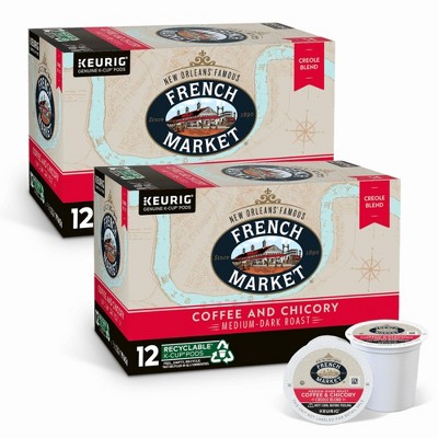 French Market Coffee Roast Single Serve Cups, Dark Roast Coffee and Chicory, 12 Count Box (Pack of 2)