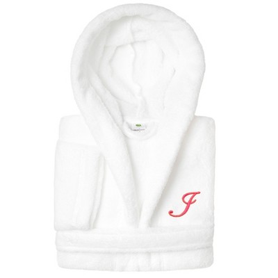 Personalized Linum Kids 100% Polyester SUPER PLUSH Double Brushed Hooded Bathrobe in White Bookman Font