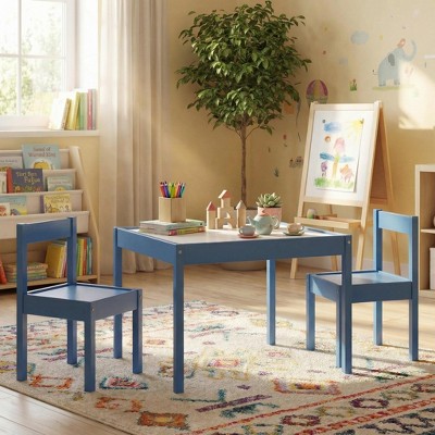 JVNOXK 3-Piece Dark Blue Dry Erase Kids Table & 2 Chair Set, Children's Art Activity Table Set