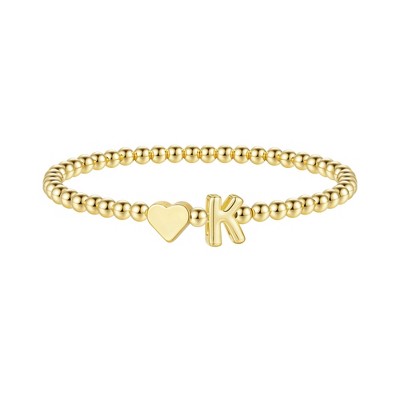 Turandoss Gold Initial Bracelets for Women Girls - Dainty Beaded Heart Bracelet for Kids, Letter Charm Bracelet for Girls, Christmas Jewelry Gifts