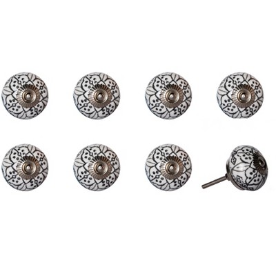 HomeRoots Set of Eight Black And White Ceramic And Metal Drawer Pull Knobs