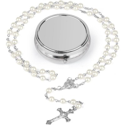 6mm Pearl Rosary Beads With Crucifix - Women's Catholic Prayer Necklace, Gift Box & Pouch Included