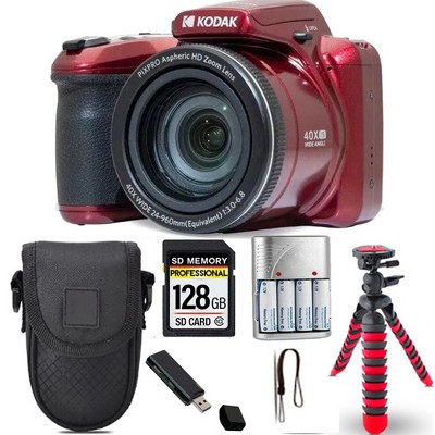 Kodak PIXPRO AZ425 Digital Camera (Red)+ Spider Tripod + Case - 128GB Kit