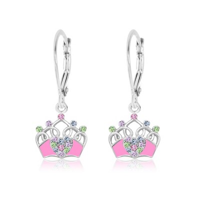 Chanteur Hypoallergenic Kids Jewelry Accessories Crown Pink CZ White Gold Palladium Plating Earrings leverback is made from 925 Sterling silver