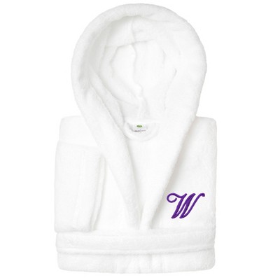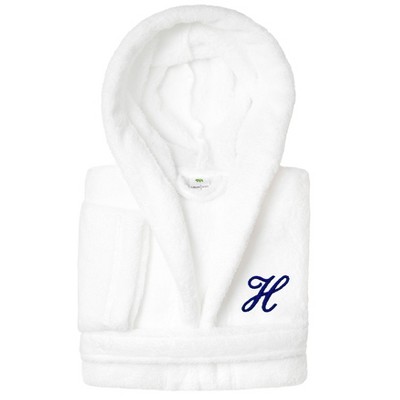 Personalized Linum Kids 100% Polyester SUPER PLUSH Double Brushed Hooded Bathrobe in White Bookman Font
