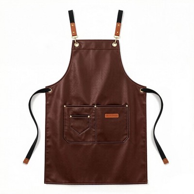 Alilang PU Leather Kitchen Apron with Adjustable Cross Back Straps Multi Pocket Work Apron for Cooking