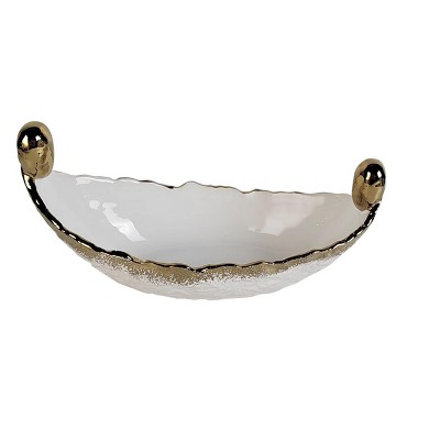 Classic Touch 12.5" Gold 2 tier relish Dish with engraved leaf vein design
