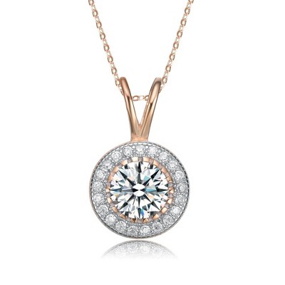 Classy round pendant necklace with clear cubic zirconia, featuring a sleek elegant design for a timeless look