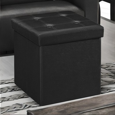 SONGMICS 15 Inches Folding Storage Ottoman, Cube Footrest, Coffee Table with Hole Handles, Faux Leather