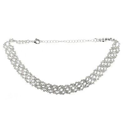 Unique Bargains Rhinestone Choker Necklace Sparkly Chain Necklaces for Women Silver Tone 1PC
