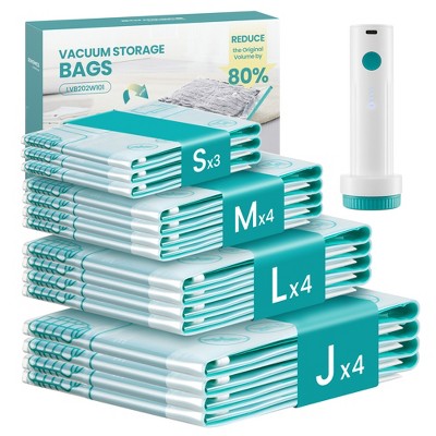 SONGMICS Vacuum Storage Bags, Rechargeable Portable Electric Pump, Space Saver Vacuum Seal Suction Bags, Reusable, 15 Pack, 3S/4M/4L/4J, Transparent