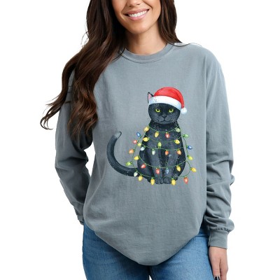 Black Cat Christmas Lights - Garment Dyed Long Sleeve