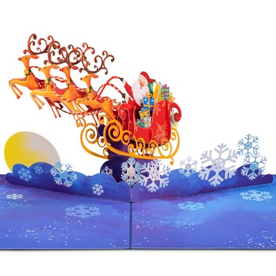 Paper Love 3D Santa Sleigh Pop Up Christmas Card for Him, Her, Kids, Adults, 5" x 7" Cover - Includes Envelope and Note Tag