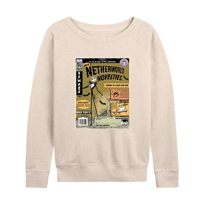 Women's - Disney - The Nightmare Before Christmas Lightweight French Terry Wide Neck Long Sleeve Graphic Shirt