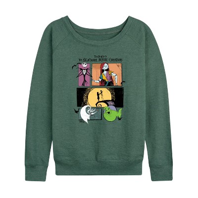 Women's - Disney - The Nightmare Before Christmas Lightweight French Terry Wide Neck Long Sleeve Graphic Shirt