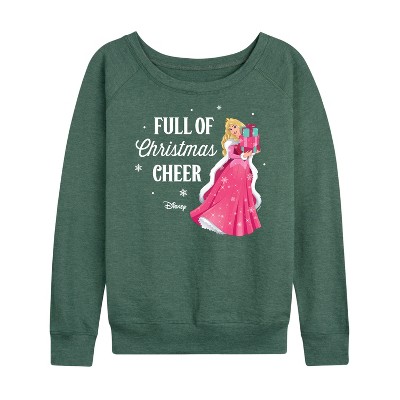Women's - Disney - Full Of Christmas Cheer Aurora Lightweight French Terry Wide Neck Long Sleeve Graphic Shirt