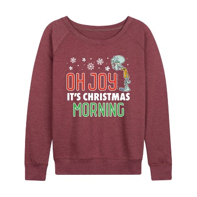 Women's - SpongeBob SquarePants - Oh Joy It's Christmas Morning Lightweight French Terry Wide Neck Long Sleeve Graphic Shirt