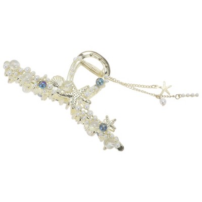 Unique Bargains Halloween Christmas Fashion Starfish Hair Clips Gold Tone White 1 Pc