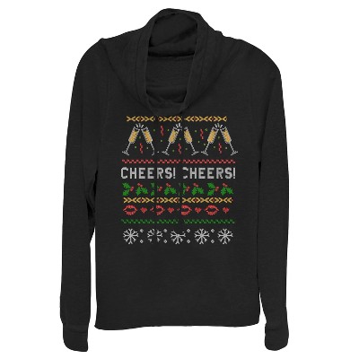 Junior's Lilo & Stitch Alien Christmas Sweater Cowl Neck Sweatshirt