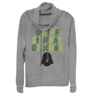 Juniors Womens Star Wars Christmas Vader Attempt Made Cowl Neck Sweatshirt
