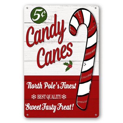 Christmas Tin Sign Candy Cane Wall Decor Vintage Christmas Metal Signs Candy Canes