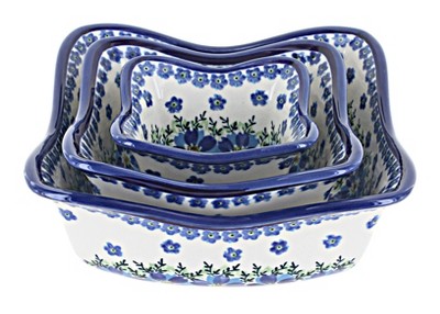 Blue Rose Polish Pottery 193012 Zaklady Square Scallop Bowl Set
