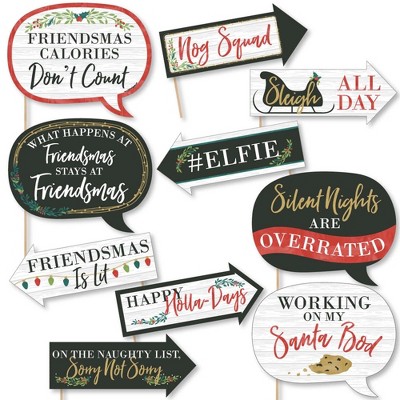 Big Dot of Happiness Funny Rustic Merry Friendsmas - Friends Christmas Party Photo Booth Props Kit - 10 Piece